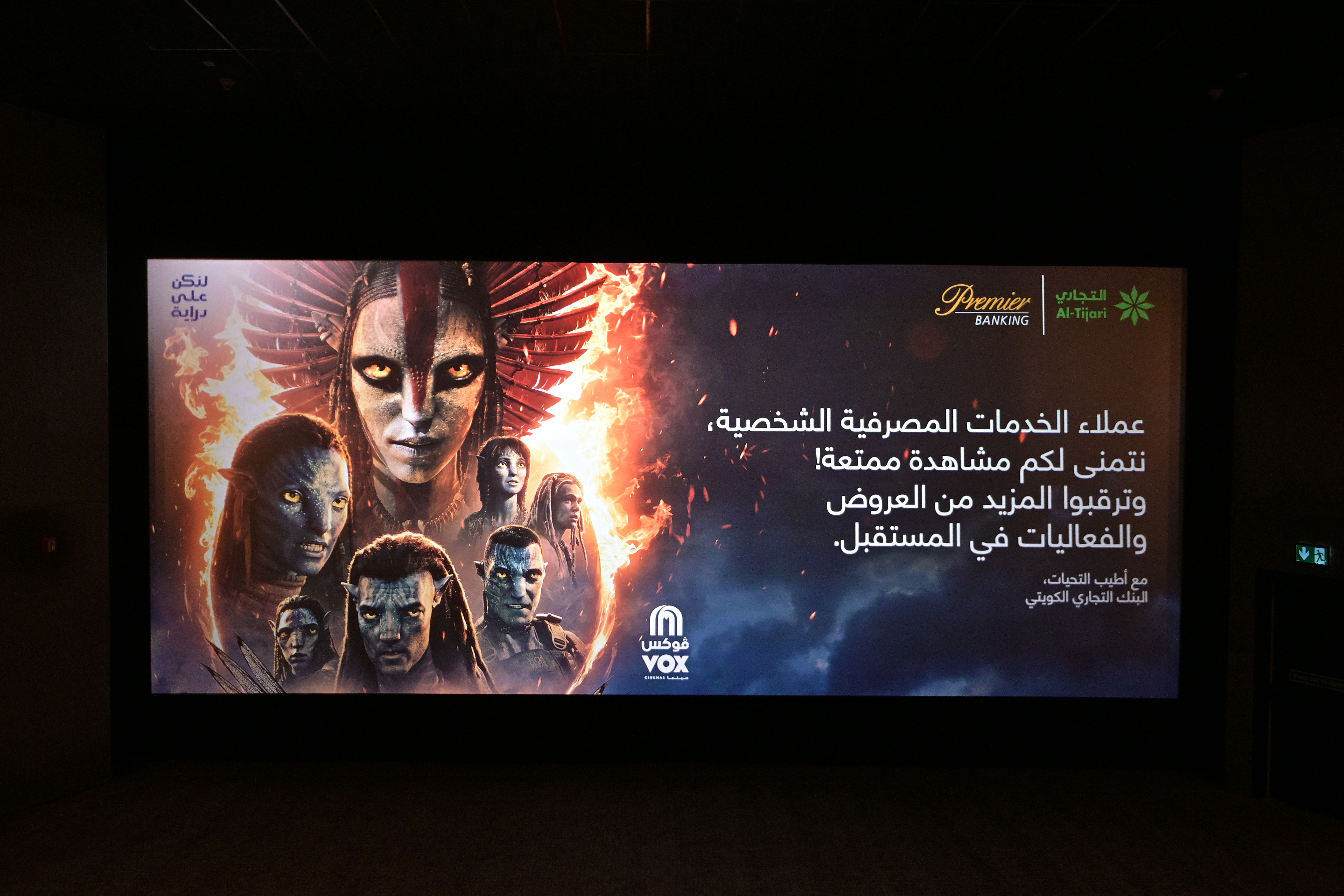 نظّم البنك التجاري الكويتي عرض حصري في سينما  VOXبمجمع الأفنيوز، من خلال حجز قاعتين خاصتين من فئة THEATRE؛ إحداهما مخصصة لعملاء YOU والأخرى لعملاء الخدمات المصرفية الشخصية البريمير، لحضور العرض الأول لفيلم أفاتار: فاير أند أش  واستمتع الحضور بمشاهدة الفيلم برفقة الأصدقاء والعائلة في أجواء سينمائية راقية، مع ضيافة من المأكولات والمشروبات المجانية، لتكون أمسية مميزة مليئة بالترفيه واللحظات المشتركة.